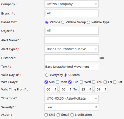 Select the Alert Type as Base Location Unauthorized Movement.