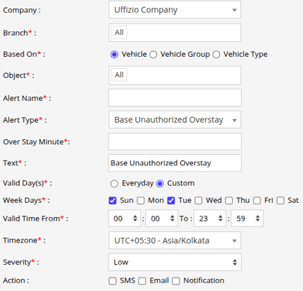 Select the Alert Type as Base Location Unauthorized Overstay.
