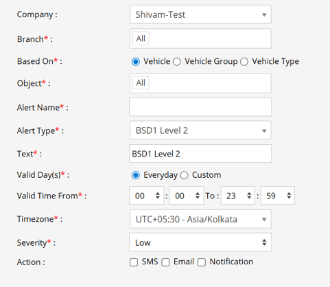 - From the Alert Type dropdown, choose BSD1 Level 2.