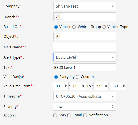 - From the Alert Type dropdown, choose BSD3 Level 1.