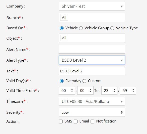 - From the Alert Type dropdown, choose BSD3 Level 2.