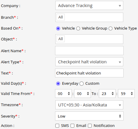 - Object Group: Select a group of vehicles for whom you want the alert to generate.