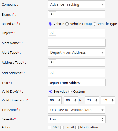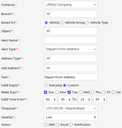 Select the Alert Type as Depart From Address.