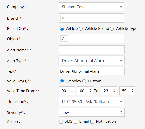 - From the Alert Type dropdown, select Driver Abnormal Alarm.