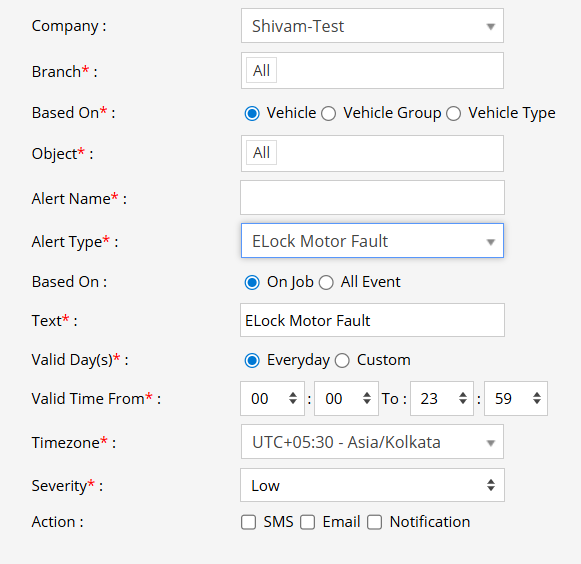 - From the Alert Type dropdown, select Elock Motor Fault.