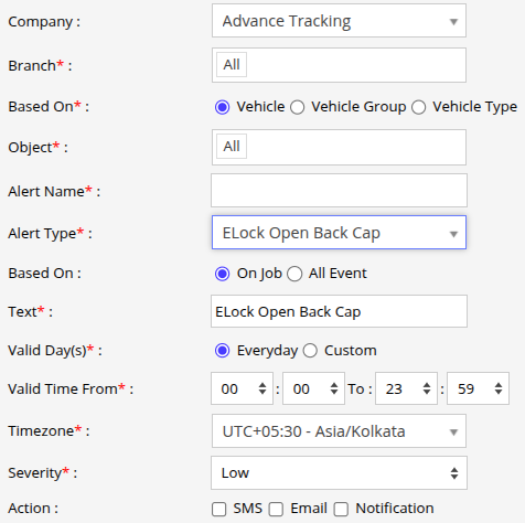 - Select the Alert Type as Elock Open Back Cap.