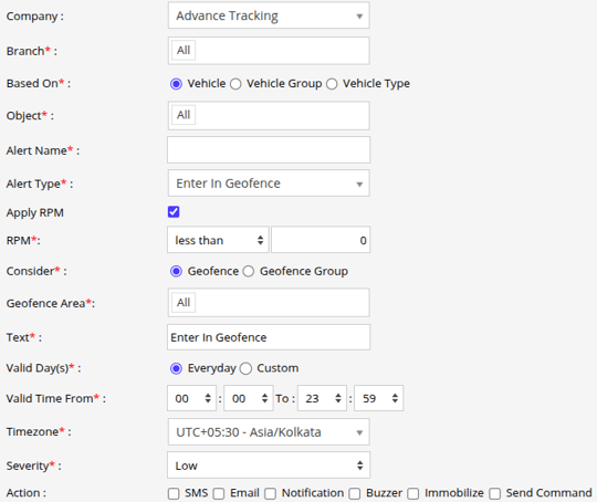 Select the Alert Type as Enter in Geofence.