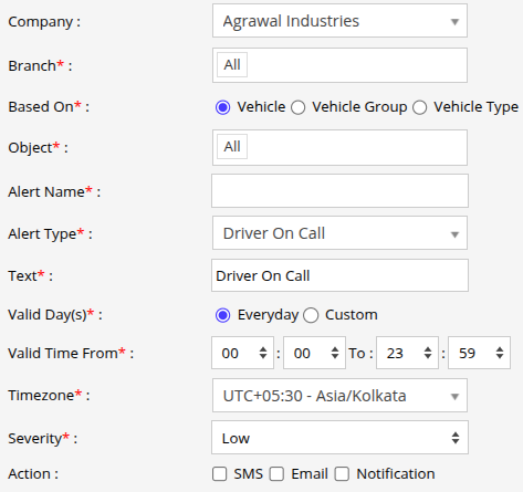 - Object Group: Select a group of vehicles for whom you want the alert to generate.