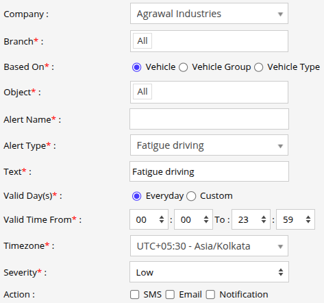 - Object Group: Select a group of vehicles for whom you want the alert to generate.