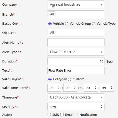 - Enter the Valid Time From and To. The alert will be generated inside the time range that you have selected.