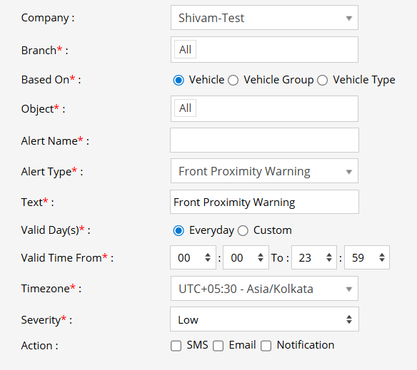 A Front Proximity alert is triggered when the ADAS system detects an object or vehicle too close to the front of the vehicle, indicating a potential collision risk. Once triggered, notifications are sent via SMS, Email, or In-App Notification to inform the driver and fleet manager. This enables immediate response — such as slowing down, maintaining a safe distance, or inspecting sensor calibration — to ensure enhanced driving safety and vehicle performance.