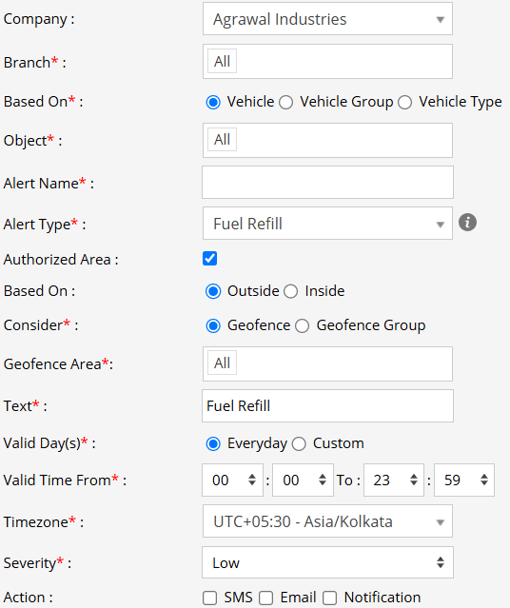 Select the Alert Type as Fuel Refill.