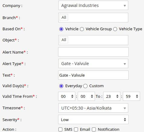 - Enter the Valid Time From and To. The alert will be generated inside the time range that you have selected.