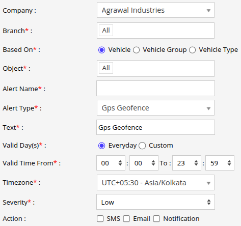 Select the Alert Type as Gps Geofence