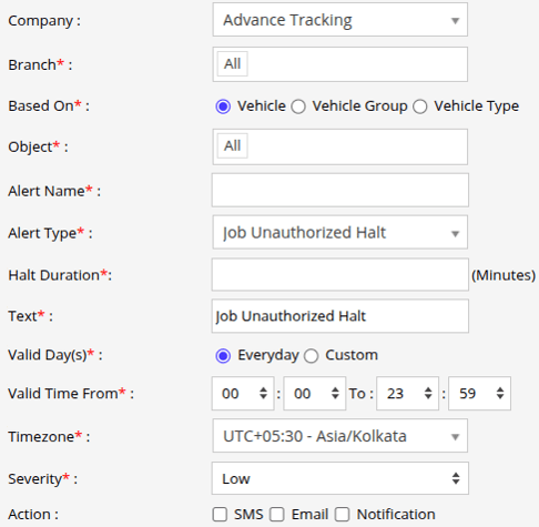- In Halt Duration, Specify the minimum halt time after which the alert will be triggered.