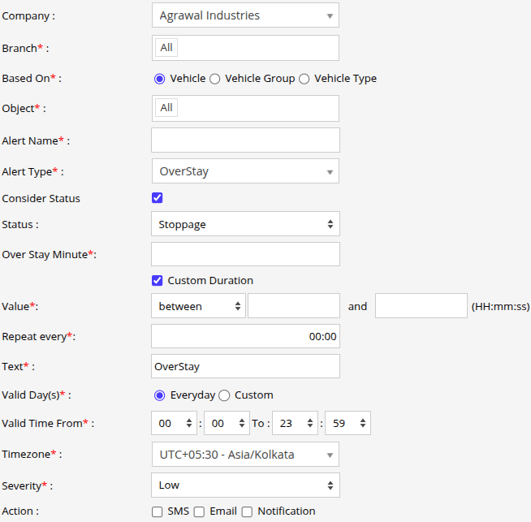 - Select the Alert Type as OverStay.