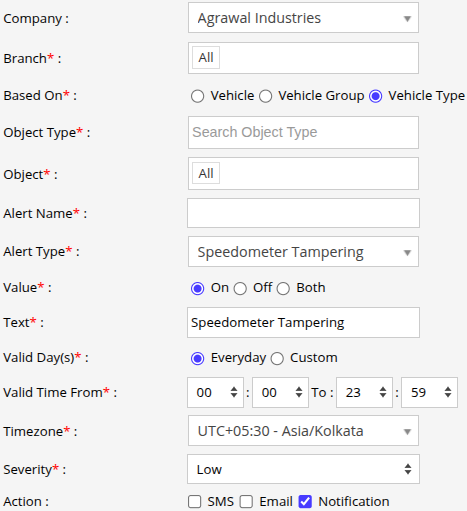 - Object Type: Select vehicle or object type for whom you want the alert to generate.