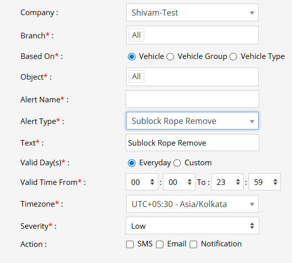 - From the Alert Type dropdown, select Sublock Rope Remove.