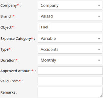 - Update the Approved Expense, Valid From, and Remarks as required.