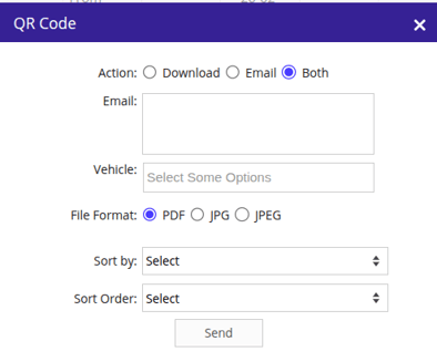- Select the Vehicle from the dropdown list for which you want the QR code.