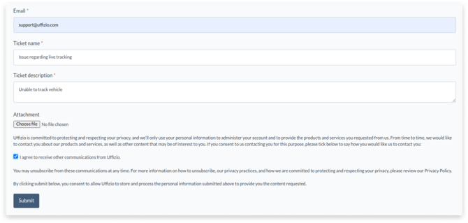 - If you have difficulty to raise a ticket from Customer Portal then directly send us email on support@uffizio.com.