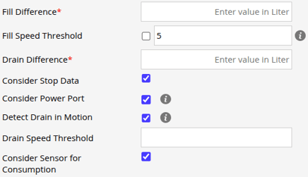 - Detect Drain in Motion: To detect and consider the drain event while the vehicle is in motion, select the corresponding checkbox.