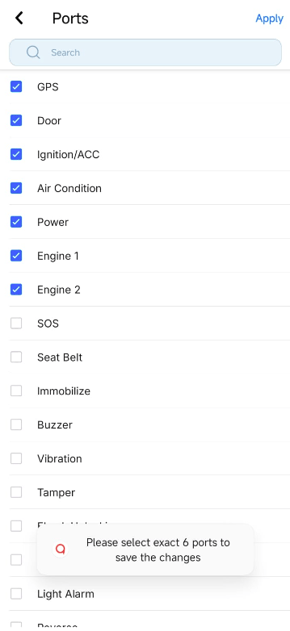 Please Note: Users needs to select 6 ports, which will then be shown in the object list for individual vehicles.