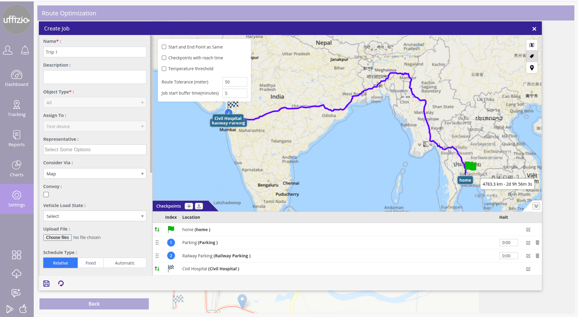 Route optimization is the process of determining the most efficient route for a vehicle or object and ensuring that selected vehicles are utilized effectively for assigned jobs. This feature helps save time, reduce fuel consumption, improve operational efficiency, lower transportation costs, and boost productivity. Jobs are automatically created using route optimization, streamlining job assignments, and ensuring optimal resource utilization.