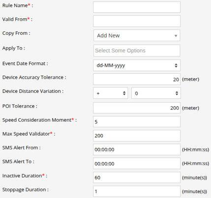- Enter Inactive Duration, Stoppage Duration, and Idle Duration.