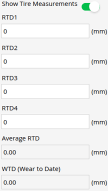 - Toggle ON, Show Tire Measurements if you want to add tire thread depth per groove.