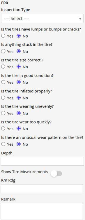 - In KM Rdg, enter the kilometer that the tire has covered during the time of inspection.